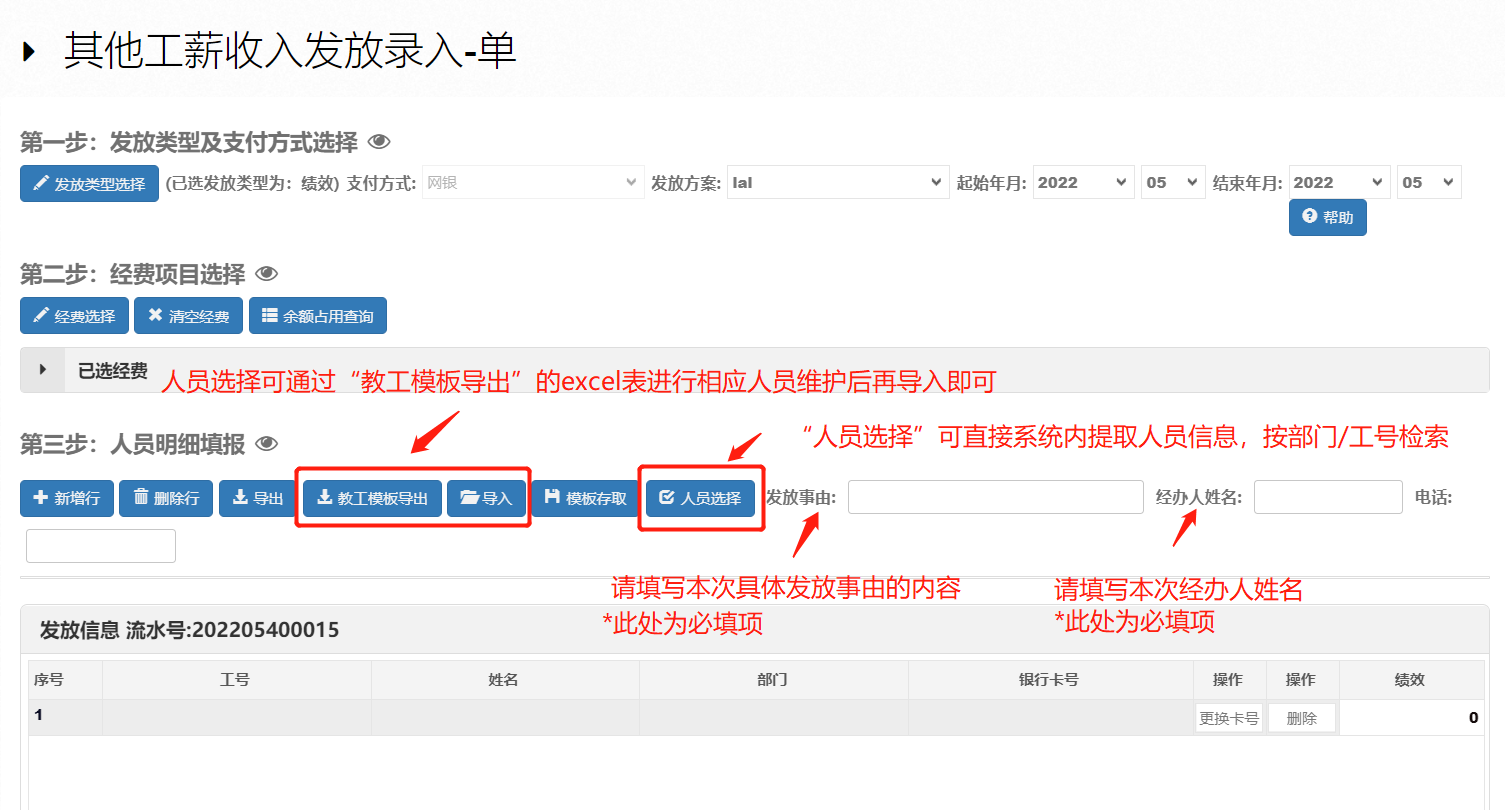 “校内人员”其他工薪收入申报如下图: