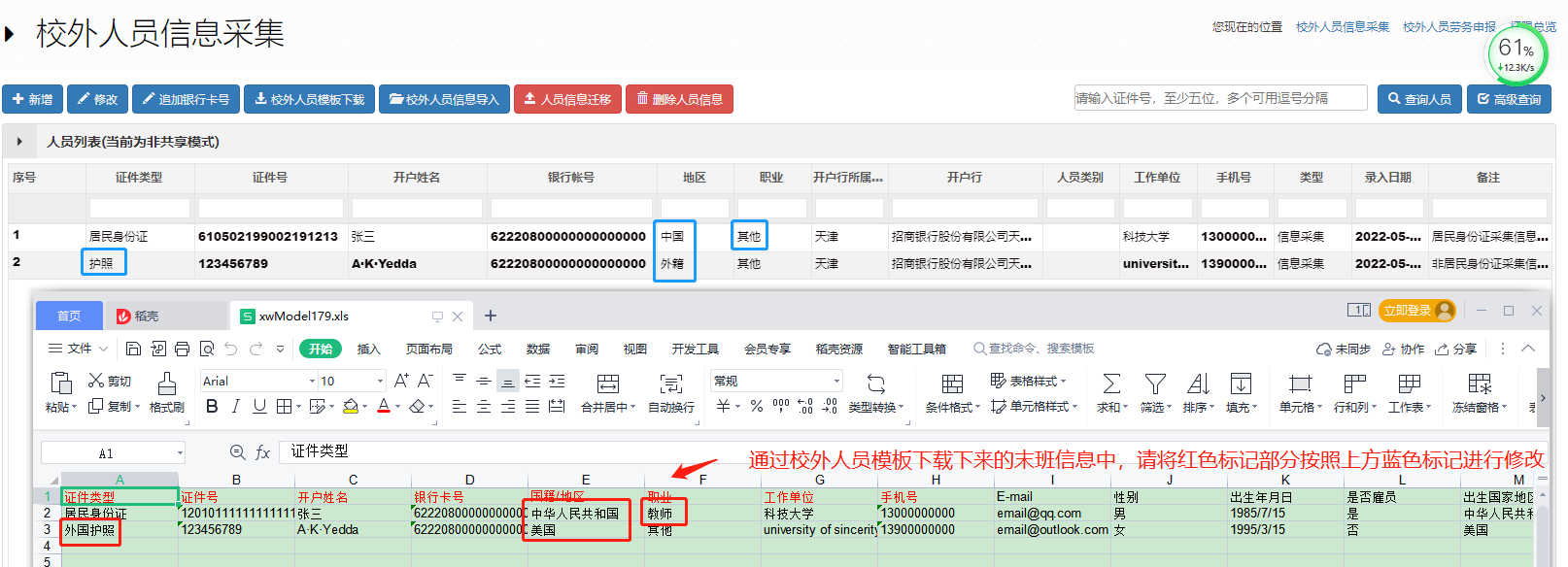 在采集模板下载后根据实际情况,部分内容需要做出相应调整,具体如下: