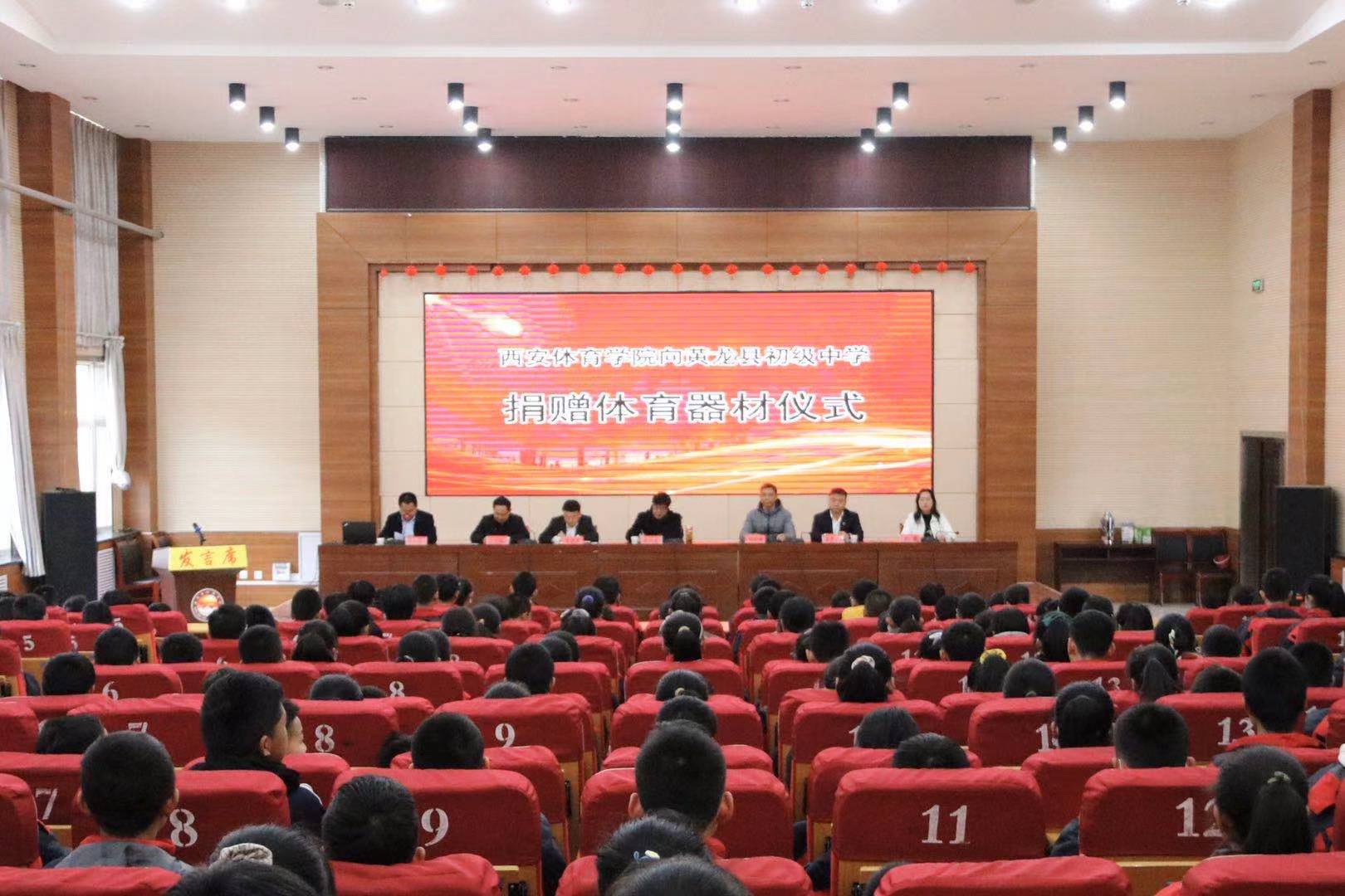 3月19日, 我校与黄龙县举行“双百工程”结对帮扶体育器材捐赠仪式,我校党委书记黄道峻、党委副书记文立新,黄龙县副县长李晓民、县教科体局负责同志、黄龙县中学500余名师生参加了捐赠仪式。