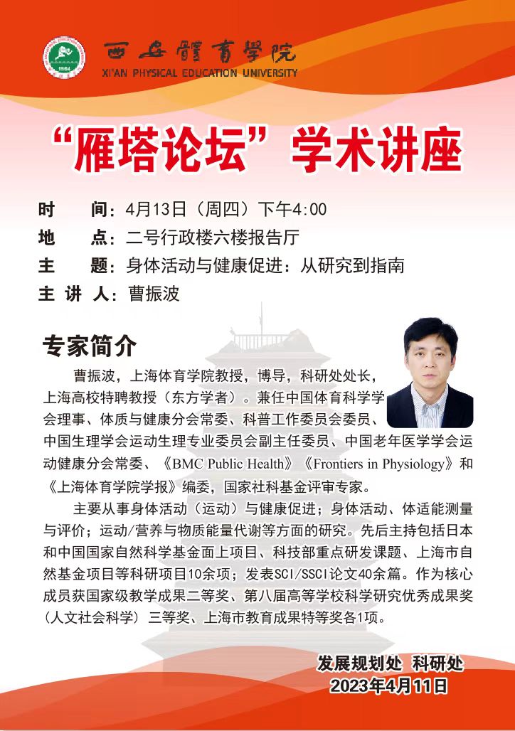 曹振波,上海体育学院教授,博导,科研处处长,上海高校特聘教授(东方学者)。