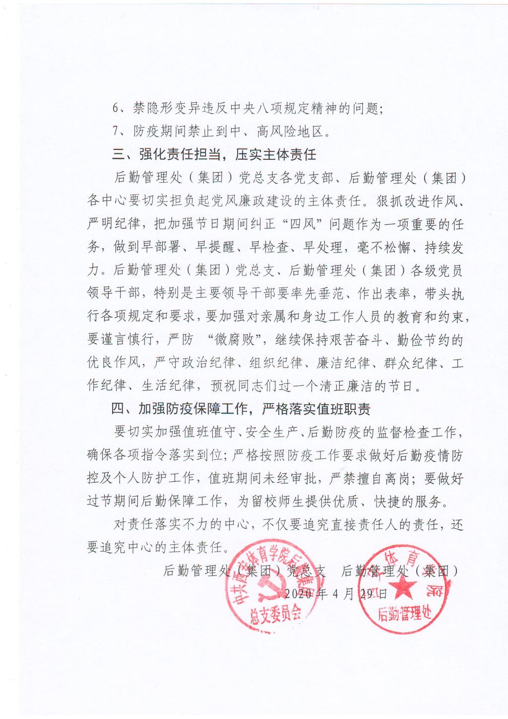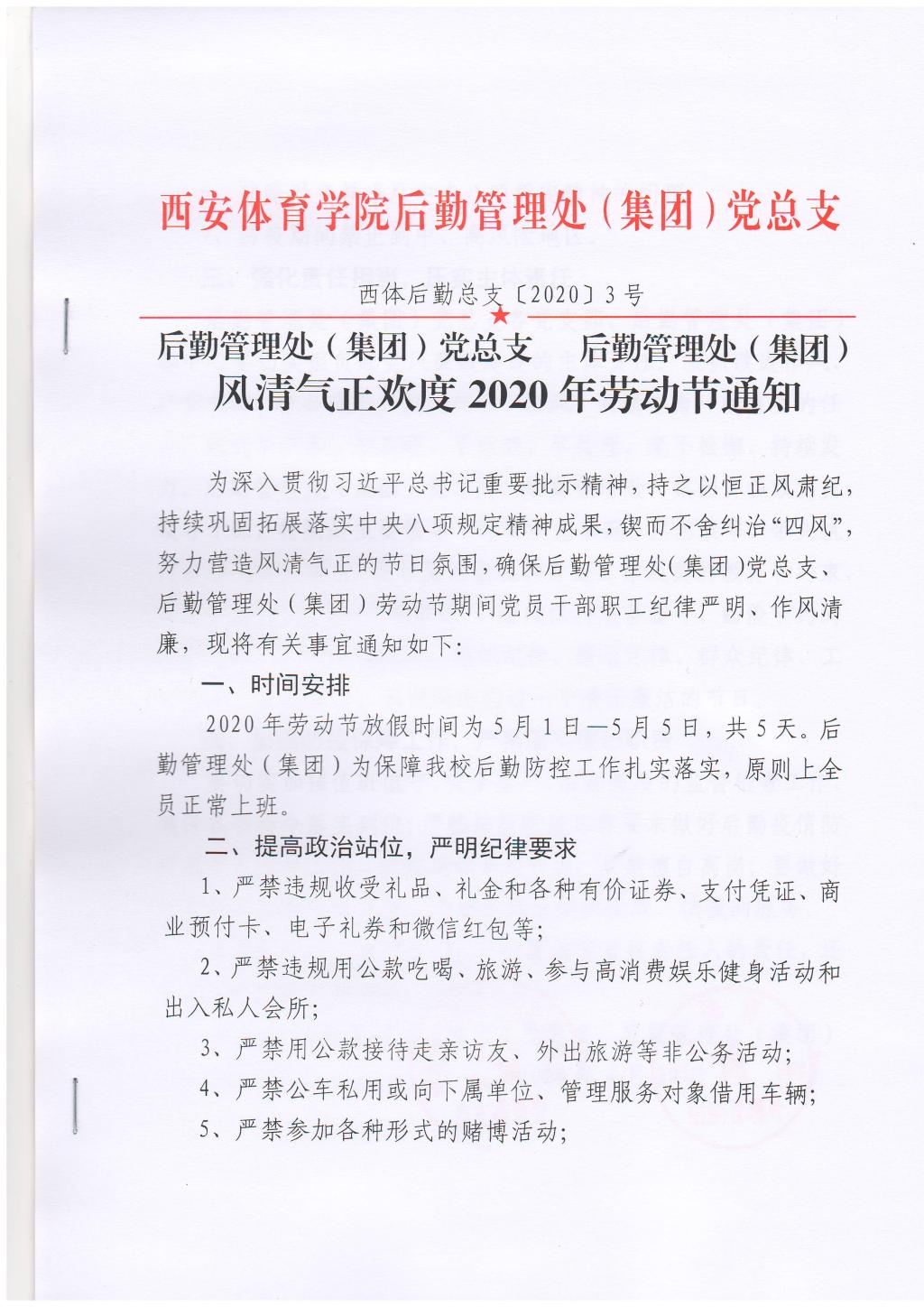 风清气正欢度2020年劳动节通知-久久不卡区后勤管理处(集团)