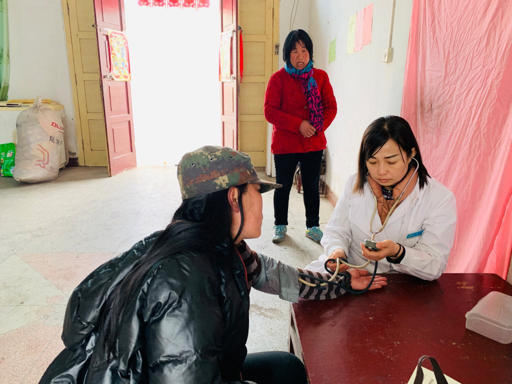 鉴于部分贫困户行动不便,医院医疗队在村卫生室工作人员的带领下,入户为他们检查身体,送去治疗药品。