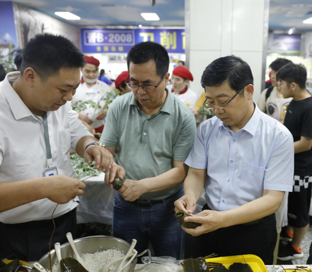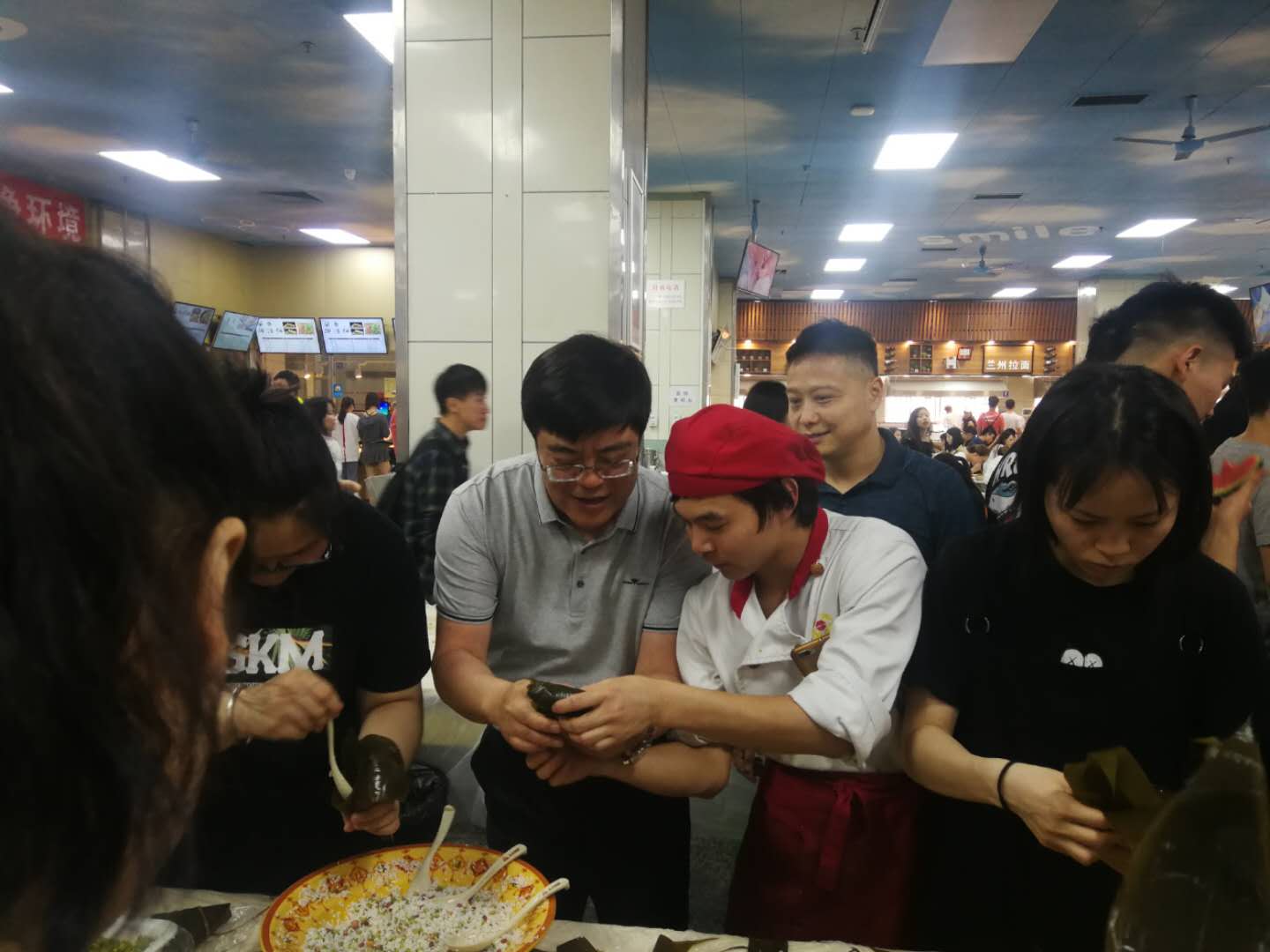 6月6日中午,后勤管理处(集团)餐饮中心在端午节到来之际,联合院学生会在学生餐厅举办了弘扬传统文化包粽子比赛,院领导黄道峻书记、刘子实副书记、李富生副院长亲临现场,与同学们一起体验了包粽子等活动。