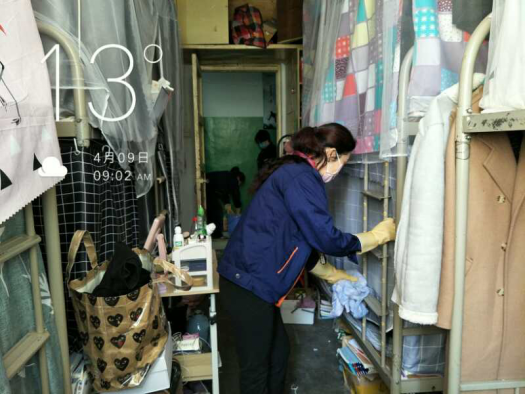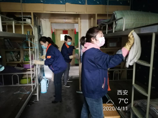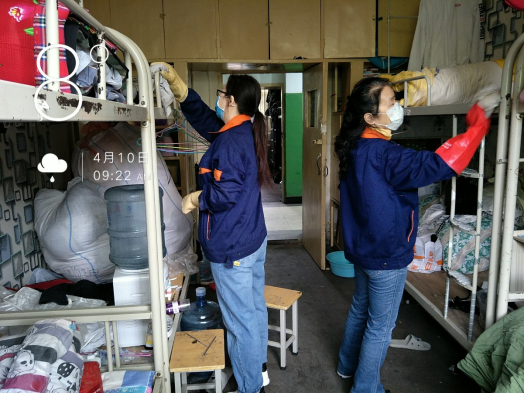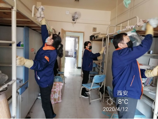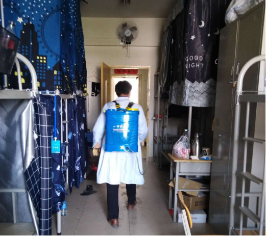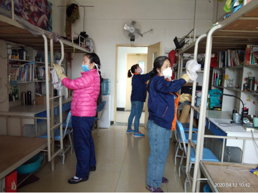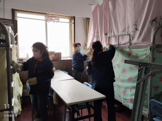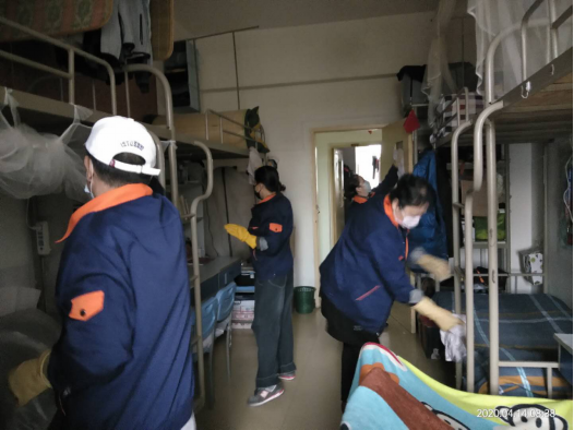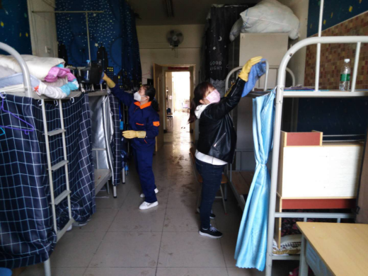 疫情暴发以来,后勤管理处(集团)学生公寓管理中心的工作人员一直坚守岗位,严格按照我校防疫工作办公室及校医院的防疫要求进行消毒、清洁工作,用实际行动守护着学生的小“家”。