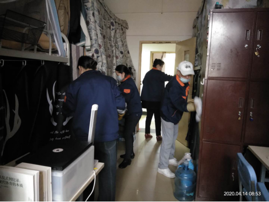 为了使学生在开学后拥有一个健康、安全、干净的居住环境,自4月7日起,学生公寓管理中心的工作人员除每日对公寓公共区域清洁消毒外,开始对校本部1200余间学生宿舍进行全面清洁、消毒及通风。工作人员认真、专业、仔细、全面,绝不留下一个死角,同时认真做好消毒记录。