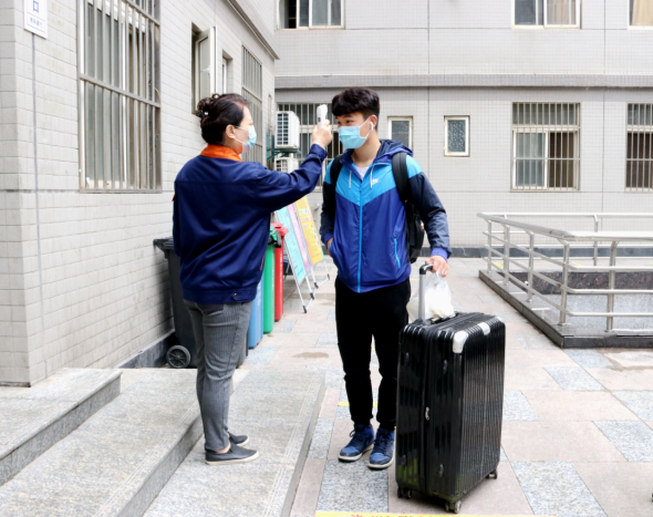 (二)后勤管理处(集团)学生公寓管理中心在对工作人员进行体温检测、登记后,严格按照校医院要求做好学生公寓清洁、消毒、通风及学生体温检测工作。 学生公寓截止5月10日18点,到校人数491名同学,其中一号楼85人,二号楼6人,三号楼46人,四号楼309人,五号楼31人,国际交流中心2人,六号楼12人。共检测出入学生体温1153人次。