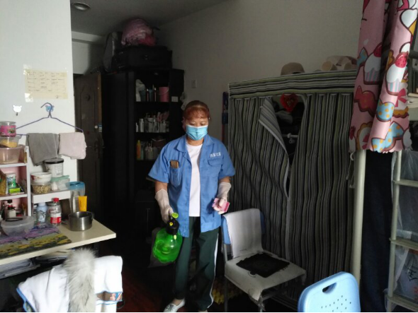 (二)后勤管理处(集团)学生公寓管理中心在对工作人员进行体温检测、登记后,严格按照校医院《学生公寓消毒指南》要求做好学生公寓清洁、消毒每日2次,通风工作每日3次,每次30分钟,以及学生体温检测工作。
