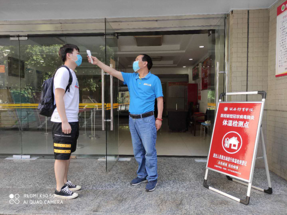 (二)后勤管理处(集团)学生公寓管理中心在对工作人员进行体温检测、登记后,严格按照校医院《学生公寓消毒指南》要求做好学生公寓清洁、消毒每日2次,通风工作每日3次,每次30分钟,以及学生体温检测工作。