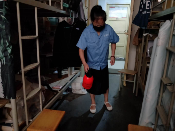 (一)后勤管理处(集团)学生公寓管理中心在对工作人员进行体温检测、登记后,严格按照校医院《学生公寓消毒指南》要求做好学生公寓清洁、消毒每日2次,通风工作每日3次,每次30分钟,以及学生体温检测工作。