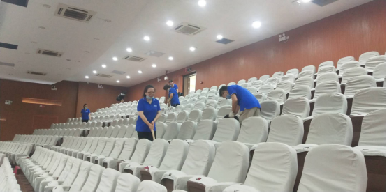 提前着手,做好场馆消杀。教学保障中心(场馆中心)为了让返校毕业生在健康安全的环境下参加毕业典礼提前三天对大礼堂、操作间、设备间等处进行消杀清洁和整理工作;对大礼堂相关设施设备、水电进行全面检查、调试确保毕业典礼万无一失。同时教学保障中心(场馆中心)对各场馆(地)、教室进行全面消杀、清洁工作,为毕业生尽情拍摄毕业照营造健康环境。