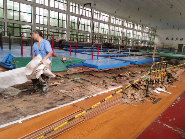体操馆训练 15人次(老师3人) 开放锻炼5人次 维修工人1人次;