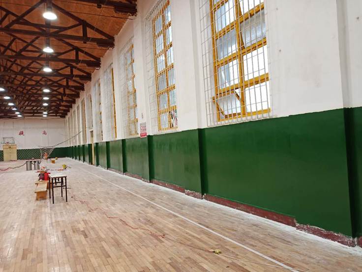 体操馆训练9人次(老师2人)开放锻炼 13人次 修缮人员8个;