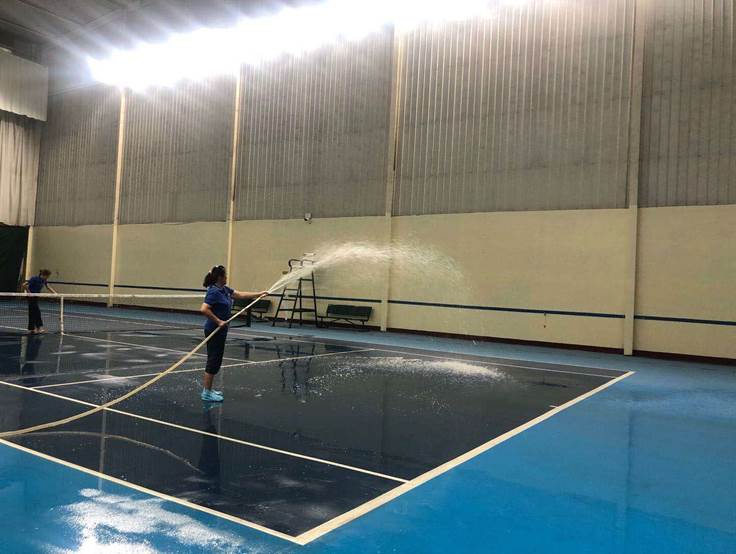(二)后勤管理处(集团)教学保障中心(场馆中心)在对工作人员进行体温检测、登记后,严格按照校医院《场馆消毒指南》要求做好场馆(地)清洁、消毒、通风及师生体温检测工作,具体如下: