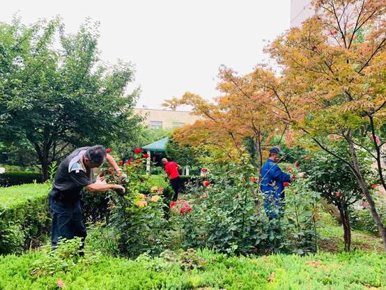 因夏季持续高温,物业中心组织人员加强校园内垃圾台的清洁工作,做好各项防疫消杀工作,不留卫生死角,每日对家属区、校园环境进行安全巡查,定期对校园内花草树木进行养护工作,做好暑期校园内的绿化保洁工作。