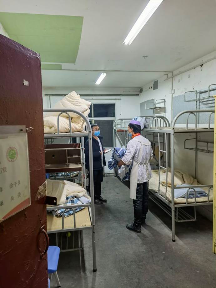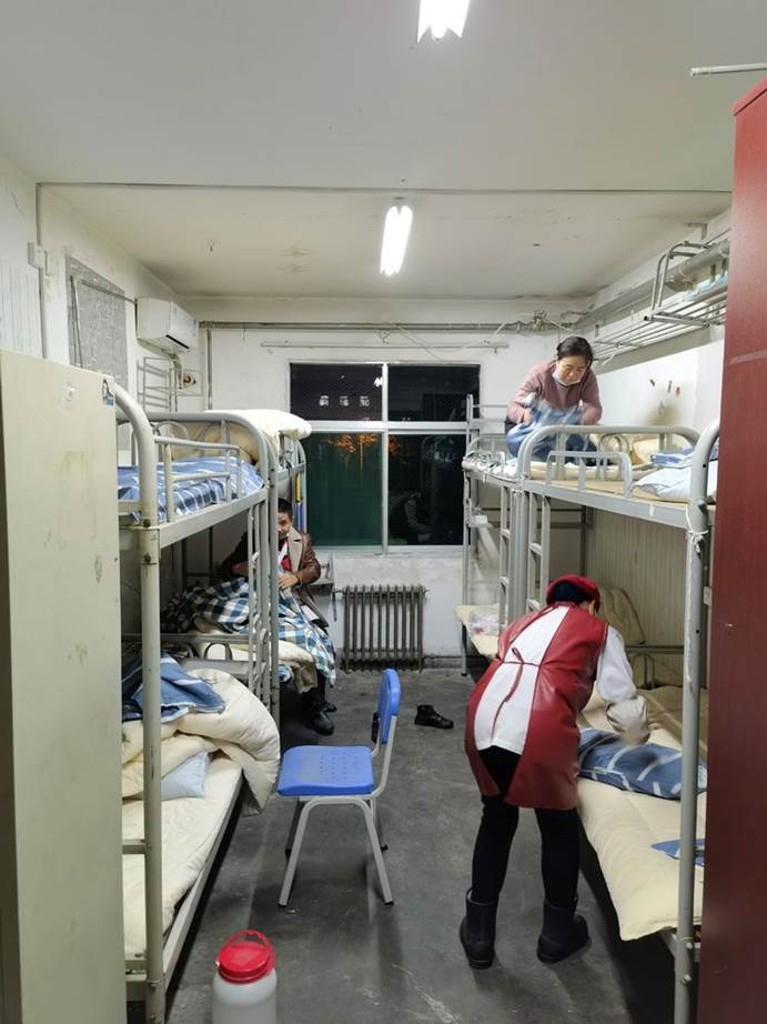 因疫情特殊时期,学生公寓、外围、场馆、餐厅部分员工无法回家,我中心安排为无法回家的一线员工安排住宿、发放被褥。并提醒员工注意安全用电用水、做好宿舍内卫生保洁。