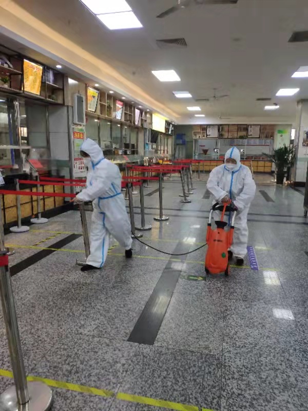 为给师生提供安全健康的就餐环境,两校区学生餐厅自封控起,在原有消杀工作的基础上适当增加消杀次数,对重点、盲点区域进行重点消杀,两校区每日累计消杀面积40000余平方米。