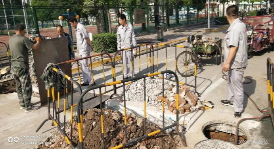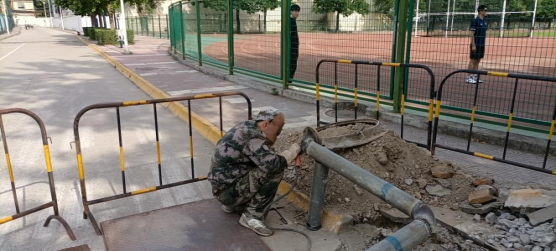 经过连续几日的抽水、更换阀门、道路开发等工作,5月19日,足球场道路给水管道更换抢修工作已进入实质性抢修阶段,保障中心工作人员克服困难,按照预定的抢修方案进行施工,重新焊接更换管道,有效解决自来水长期渗漏造成的浪费,达到“节约用水,杜绝浪费”的安全生产目标。