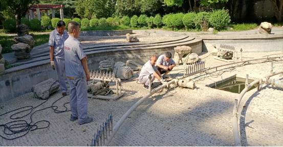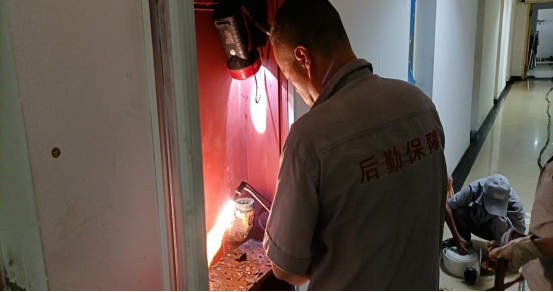 6月16日,后勤管理处(集团)服务保障中心同时接到两项报修项目,分别是奥林匹克花园喷泉水泵故障和5号公寓4层消防栓锈蚀喷水,接到报修后工作人员立即奔赴现场查看,现场制定工作方案,将维修人员相互调配,一组负责冒着高温露天维修喷泉,另一组负责抢修消防管道,两组人员同时进行,全力保障在最短的时间内迅速解决两项维修工作。