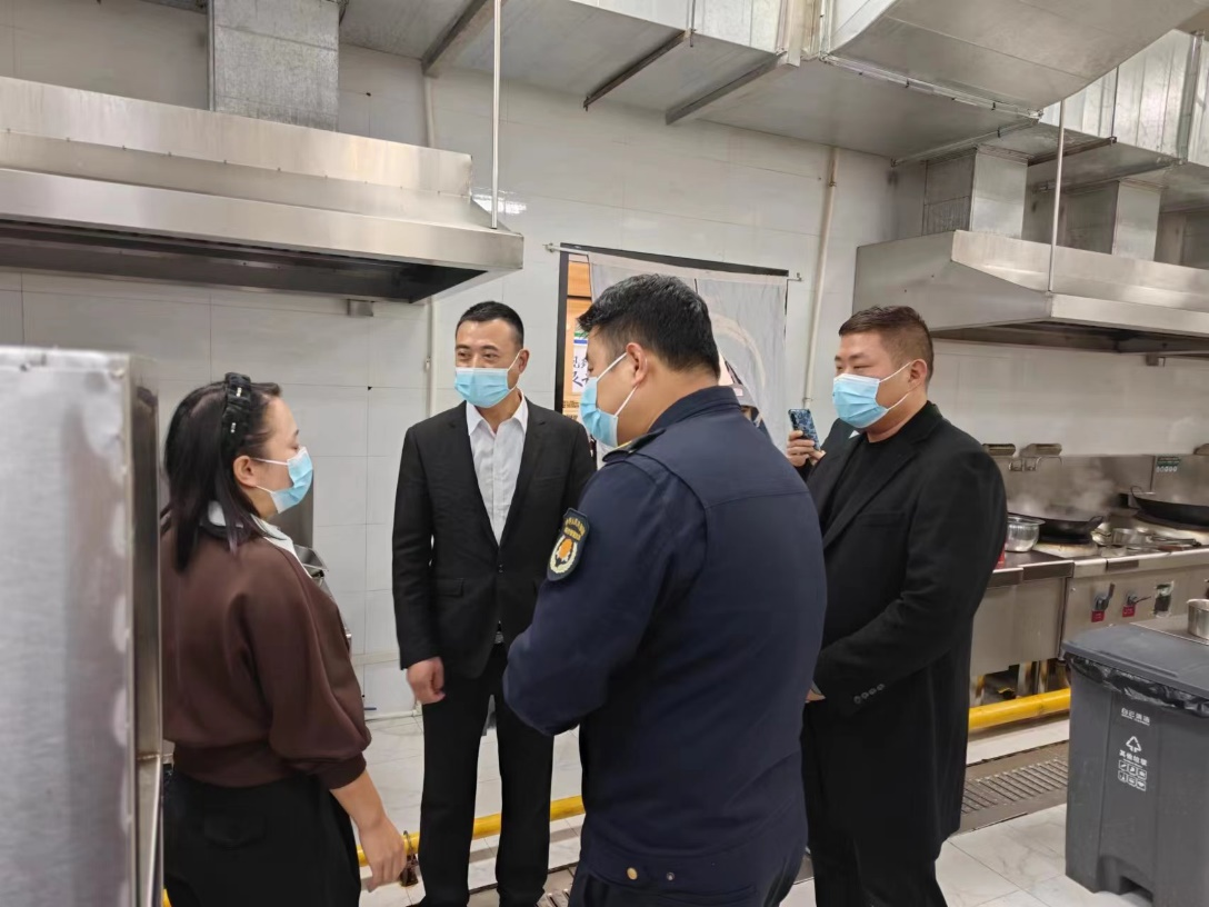 检查组一行人对餐厅油烟净化、厨余垃圾清理、环境保护台账等进行实地检查,并听取了餐饮公司负责人关于学生餐厅环境保护工作的汇报。