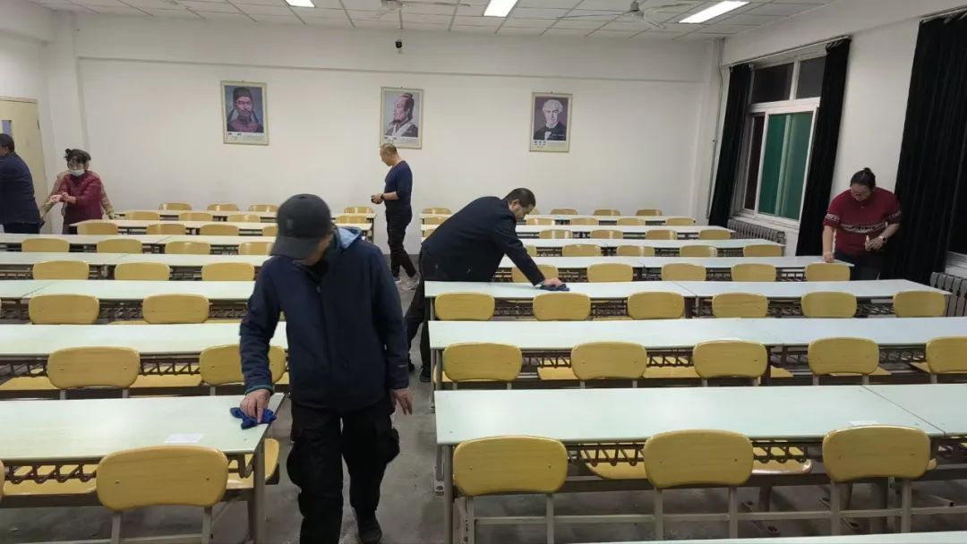 在考研的前夕,有一群默默无闻的工作人员,他们就是后勤管理处教学保障中心的成员。在考生们紧张备考的同时,他们正精心准备着考场的每一个角落。