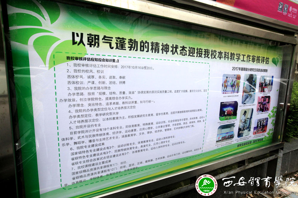 本网讯 新学期,新气象,新面貌。校园宣传栏是校园文化建设的重要载体,是展示学校品牌形象的重要窗口,亦是系部各处室相互交流学习展示的平台。为迎接新学期开始和新生入学,努力营造良好的校园文化氛围,由宣传部倡议,各系部、各部门将宣传栏更换一新,直观展现了近期在教学、科研、竞赛、训练及在特色亮点工作等方面取得的成绩,吸引着许多过往的师生、家长驻足观看,促使并引导新生朋友尽快了解西体、热爱西体、增强归属感,成为校园里的一道靓丽的风景线。9月3日,记者抓拍一组比较有特色的宣传栏,供大家欣赏。