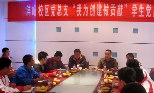 为配合学院创建省级“文明校园”工作,9月28日下午,沣峪校区党总支在校区会议室召开“我为创建做贡献”学生党员座谈会。沣峪校区各支部书记、年级辅导员及2011级全体学生党员参加了座谈会。校区党总支书记张鹏华出席并主持了座谈会。