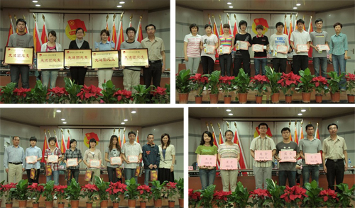 大会还宣读了《关于2011年先进团总支、先进团支部、优秀共青团干部、优秀共青团员、校园文化建设先进工作者表彰决定》和2010、2011年大学生课外学术科技作品获奖者名单。5个先进团总支、23个先进团支部、30名优秀共青团干部及186名优秀共青团员受到了表彰,出席会议的领导及嘉宾分别为获奖单位及代表颁发了荣誉证书和奖牌。