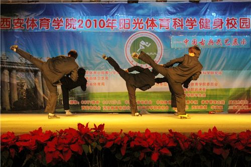 本次中国古典武艺展示是国家体育总局主办的2010年“阳光体育科学健身校园行”活动重要组成部分,活动充分展现了西体学子健康向上的精神风貌和中国古典武艺自强不息、威武不屈的“尚武精神”。活动的成功举办将引导我院广大师生更多地走进阳光、走向健康,同时推动“全国亿万青少年学生阳光体育运动”的广泛、深入开展。