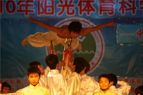 12月29日,我院团委、武术系、院学生会在大学生活动中心组织举行了“阳光体育科学健身校园行”中国古典武艺展示活动。原陕西省副省长巩德顺,陕西省人民检察院副检察长王英杰等省、市领导,院长苏明理、党委副书记朱元利到场观看了表演。在近一个小时的表演中,武术系的同学们向观众展示了集体盾牌刀、破风刀对劈、头开钢条等三十多个古典武艺项目,其中银枪刺喉表演将整个活动气氛推向高潮,赢得了在场观众经久不息的掌声。