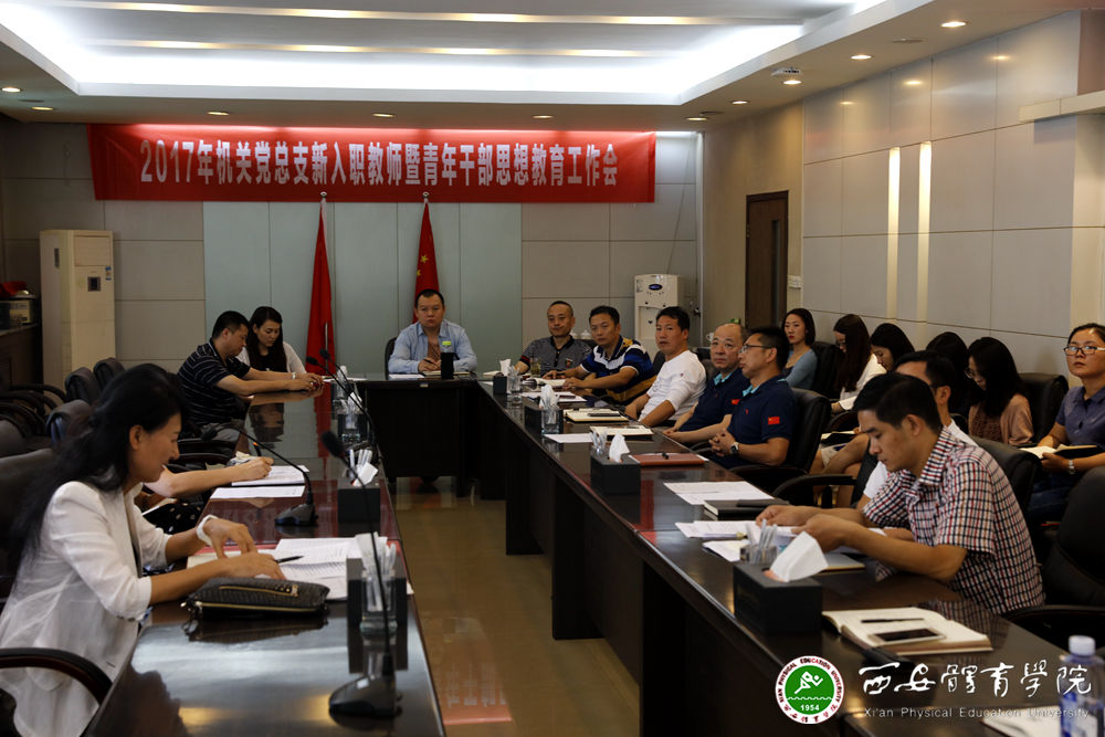 本网讯 9月13日上午,机关党总支在行政楼二楼会议室召开2017年新进教师见面会暨青年干部新学期思想教育工作会议。副院长陈彦、纪委书记赵军出席会议,各部门负责人、机关总支委员、各支部书记及2016、2017年新进教师参加会议。会议由机关党总支书记朱广超主持。