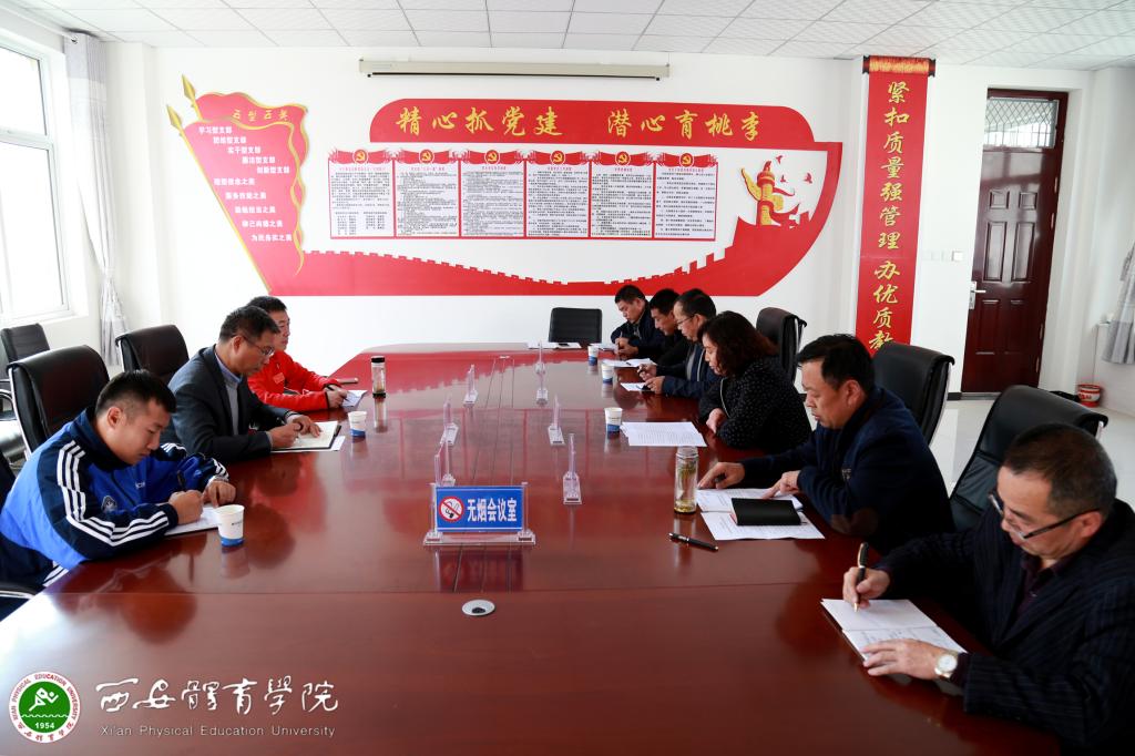 文立新详细介绍了学院的基本情况,他指出,此次扶贫工作要贯彻落实习近平总书记“扶贫先扶志,扶贫必扶智”的指示精神,充分发挥我院教育、体育在育人脱贫、精神扶贫方面的优势作用,如中小学体育教师教学技能培训、体育中心教练员培训、校园足球等方面,促进黄龙县教师教学水平及特色校园体育建设水平提高。学院还将积极组织动员大学生志愿者服务西部计划等活动,打造一批具有黄龙特色的体育品牌赛事,不断提升黄龙县影响力,扩大知名度,提升体育文化水平,尽心尽力完成脱贫帮扶工作。