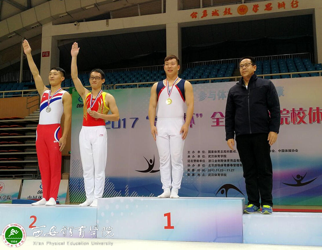 我院学子周耀林(左三)获得男子组鞍马第一名