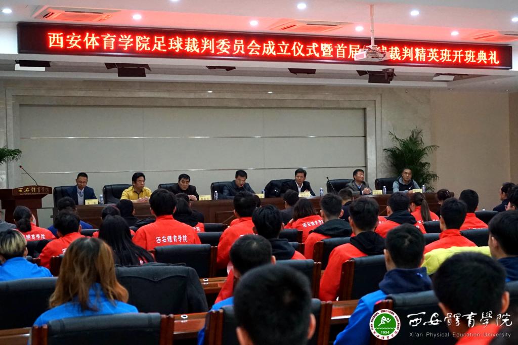 本网讯 12月27日,我院召开了足球裁判委员会成立大会,中国足球协会裁判委员会委员杨志强、全国校园足球裁委会主任蔡基洙、我院副院长陈彦、陕西省足球运动管理中心副主任李新锁、西安市足球运动管理中心韩建华主任、中国足协裁判讲师王津出席了大会。大会由我院足球学院院长朱军主持。