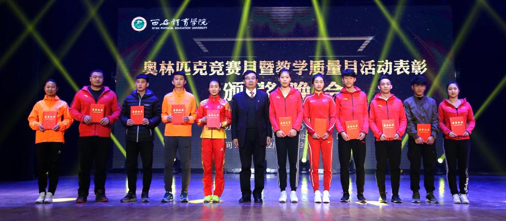 本次表彰大会对“2017年奥林匹克之星”获得者、“2017年优秀学风奖”获得者、“2017年教学成果奖”获得者、“2017年教学先进个人奖”获得者“陕西省第二届高校教室微课教学比赛”获奖者、“第十三届全运会”获奖运动员、教练员等60余名优秀师生进行了表彰。