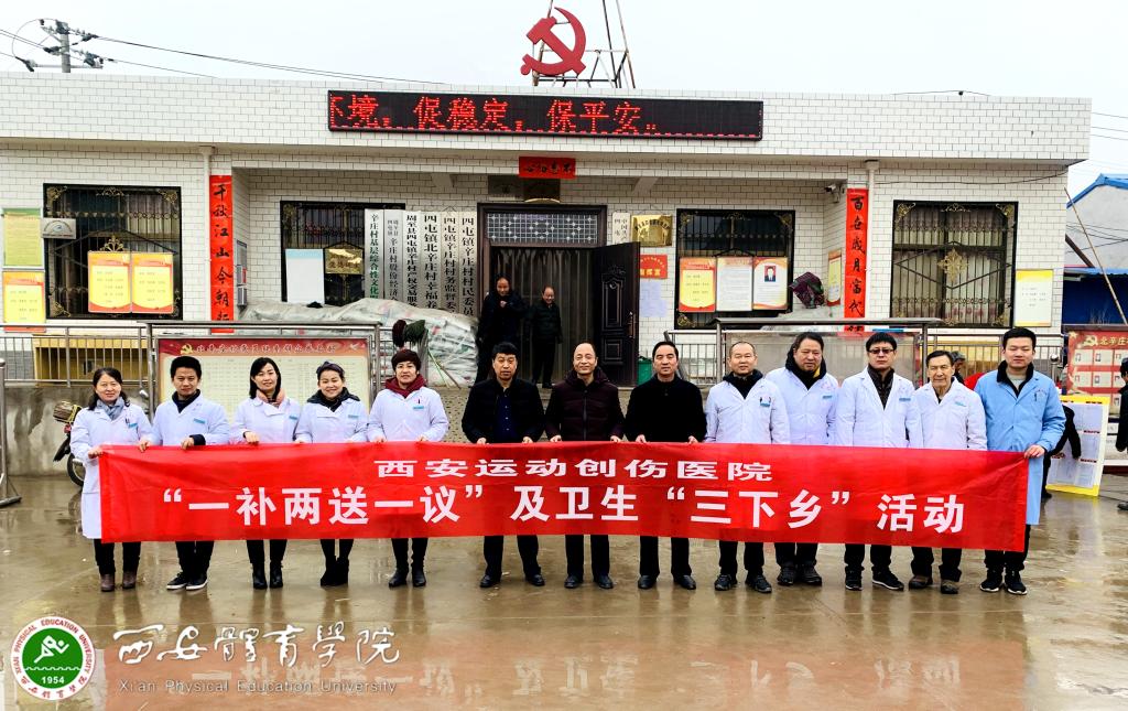 本网讯 近日,为响应“一补两送一议”政策号召和市卫健委“三下乡”活动要求,我院运动创伤医院院长何昌谋、办公室主任王晓峰等专家带领医疗队冒雨为对口扶贫点周至县辛庄村、余家村开展医疗帮扶活动。