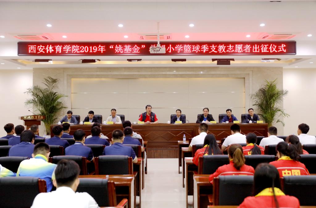 本网讯 5月14日上午,2019姚基金希望小学篮球季——久久不卡区支教志愿者出征仪式在2号办公综合楼报告厅举行。中国篮协副主席、陕西省篮协主席王立彬,团省委希望办主任、省青少年发展基金会理事长邬钢,我院党委副书记刘子实等出席,学院相关职能部门、系部领导以及学生代表近百人参加。