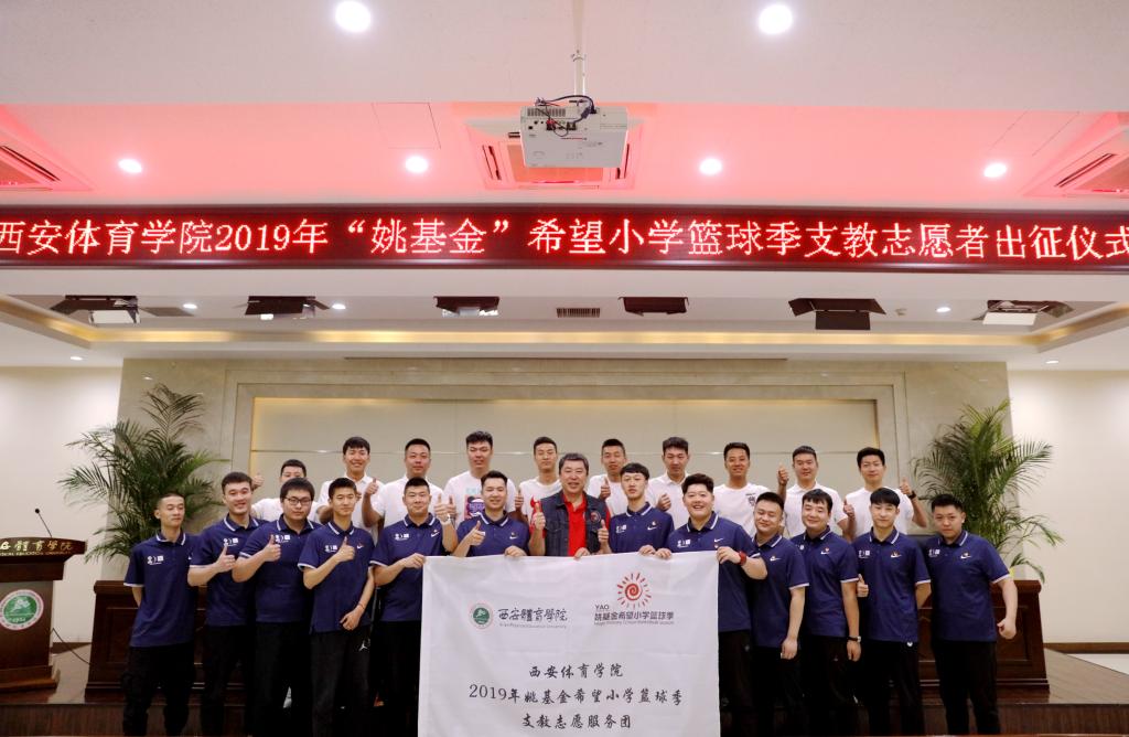 出征仪式上,王立彬对我院长期支持姚基金希望小学篮球季支教工作表示衷心感谢,对即将开始支教的志愿者提出殷切希望,并为我院2019年姚基金希望小学篮球支教服务团授旗。