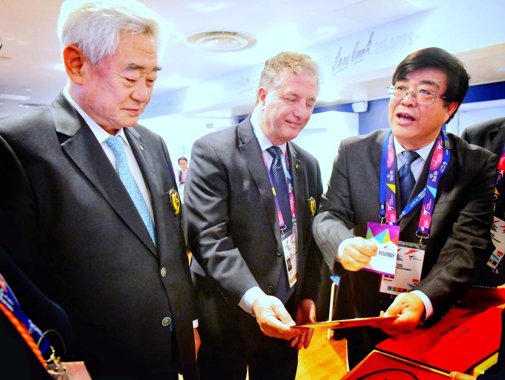 在瑞士洛桑,代表团参观了国际奥林匹克博物馆和国际奥委会世跆联中心,并同相关人员进行了座谈。