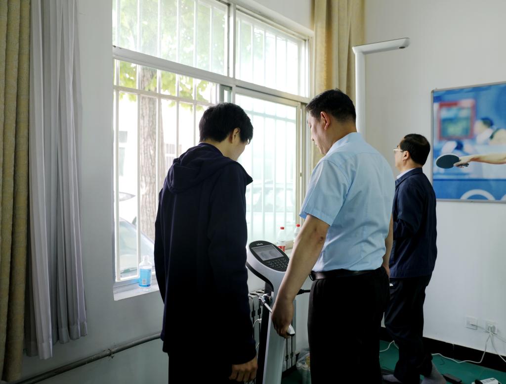 张明军副教授带领团队为当地干部群众开展健康体质测试,前来参与测试的人络绎不绝。刘军和张明军在现场为受测人员讲解测试报告。
