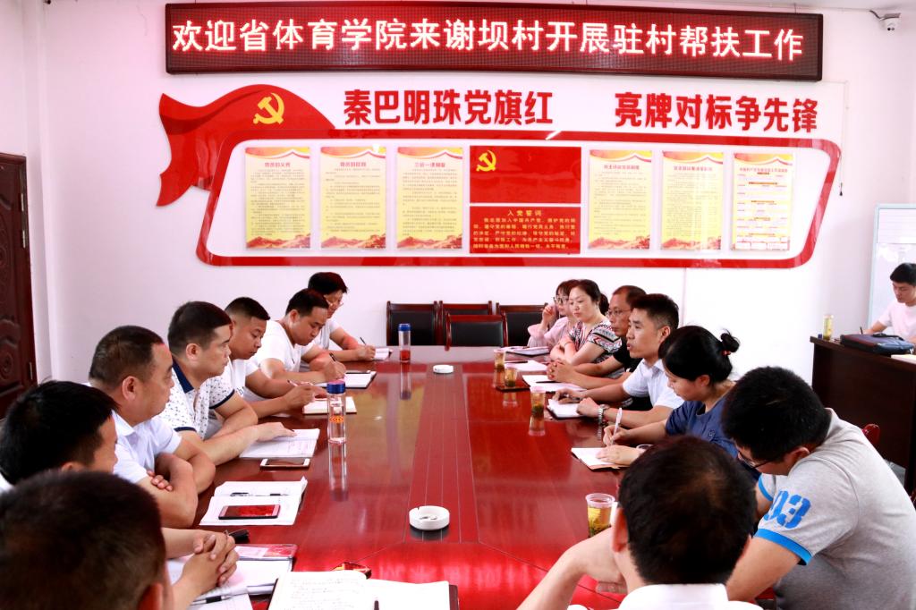 会上,县河镇纪委书记王琦和谢坝村支书陈宗奇分别介绍了当地贫困户现状、基础设施建设、产业发展和省总工会近年来帮扶成绩等情况。郭春玲表示,学院有能力、有信心做好帮扶工作,希望两位驻村同志尽快熟悉情况,发扬西体精神,与当地扶贫负责人一起做好脱贫攻坚工作。齐卫民代表驻村工作队作了表态发言,表示将与谢坝村“三支”队伍携手共同努力打好脱贫攻坚战。张军表达了学院党政领导的亲切问候,介绍了我院基本情况和在黄龙县“两联一包”精准扶贫中所取得的成绩,并表示学院会从体育教育特色优势与村里实际需求相结合,全方位做好脱贫攻坚工作。汉滨区扶贫办罗晓琴组长对我校驻村帮扶表达了感谢,并表示希望驻村干部迅速融入、抓紧调研,扎实开展扶贫工作。