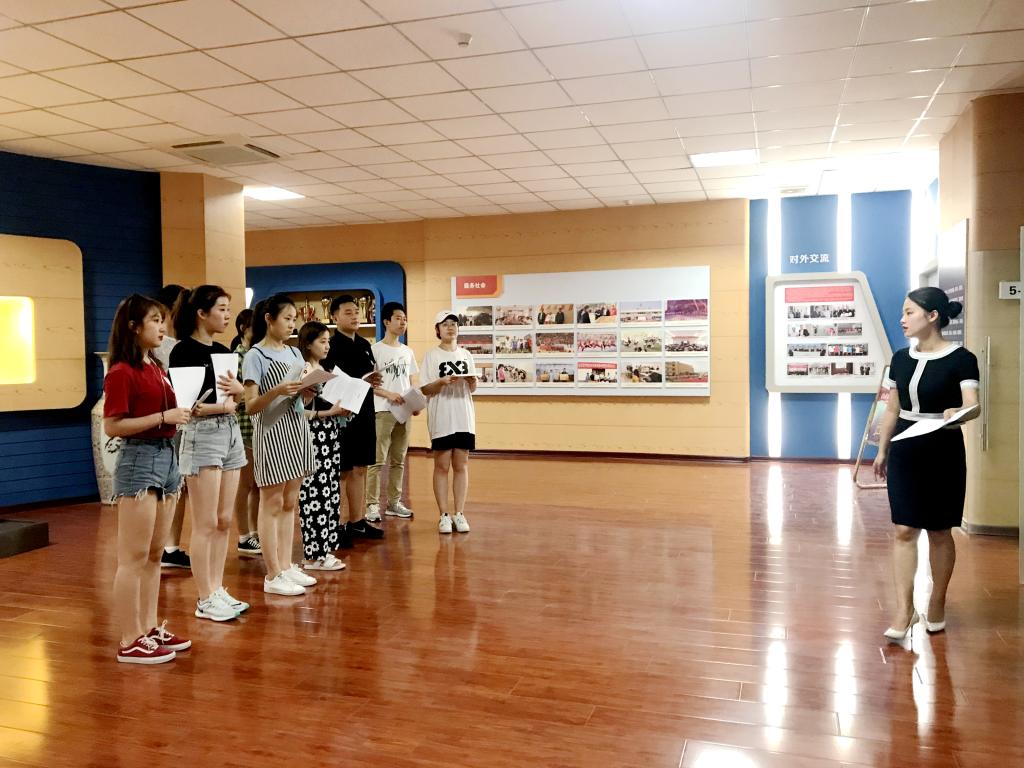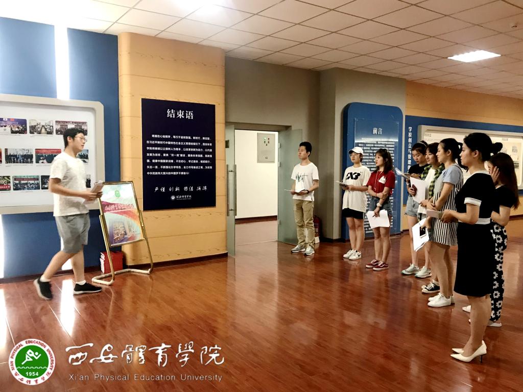 业务培训结束后,党委宣传部顾彬带领大家参观校史馆,回顾了我校的创办历史和发展沿革,详细介绍了建校65年来教学、科研、训练、竞赛、人才培养、校园文化、对外交流等方面的发展成果,并对校史馆的结构布局和硬件设施等进行了简要的介绍。随后,学生讲解员在校史馆逐一进行模拟试讲,两位老师针对每位同学的问题进行现场指导。