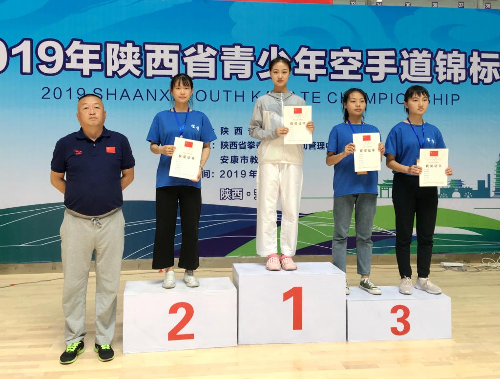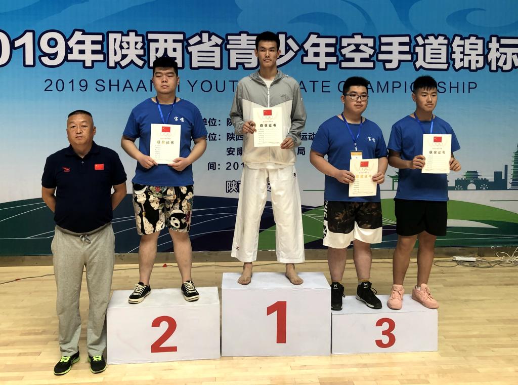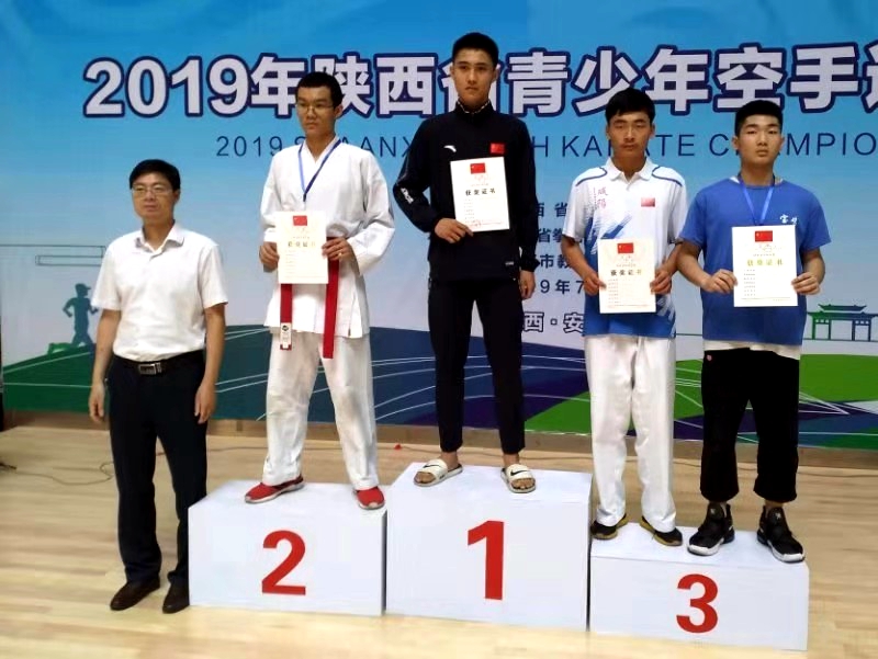 本次比赛,我校空手道运动员共取得了3金1银的优异成绩。其中杨本级代表安康获得了甲组男子个人组手68KG第一名,肖力源代表汉中获得了甲组男子个人组手+76KG第一名,严文喆代表铜川获得了甲组女子个人组手53KG第一名,马一航代表渭南获得了甲组男子个人组手68KG第二名。