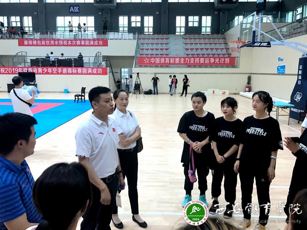 本次比赛是我省首次举办的青少年空手道锦标赛,共有9个参赛单位近200名裁判员、教练员、运动员参加。陕西省体育局青少处调研员靳旭东,省拳跆中心书记、我校附属竞技体育学校校长张文军,省拳跆中心副主任李涛等参加开幕式,我校竞训处副处长杨亚玲主持开幕式。
