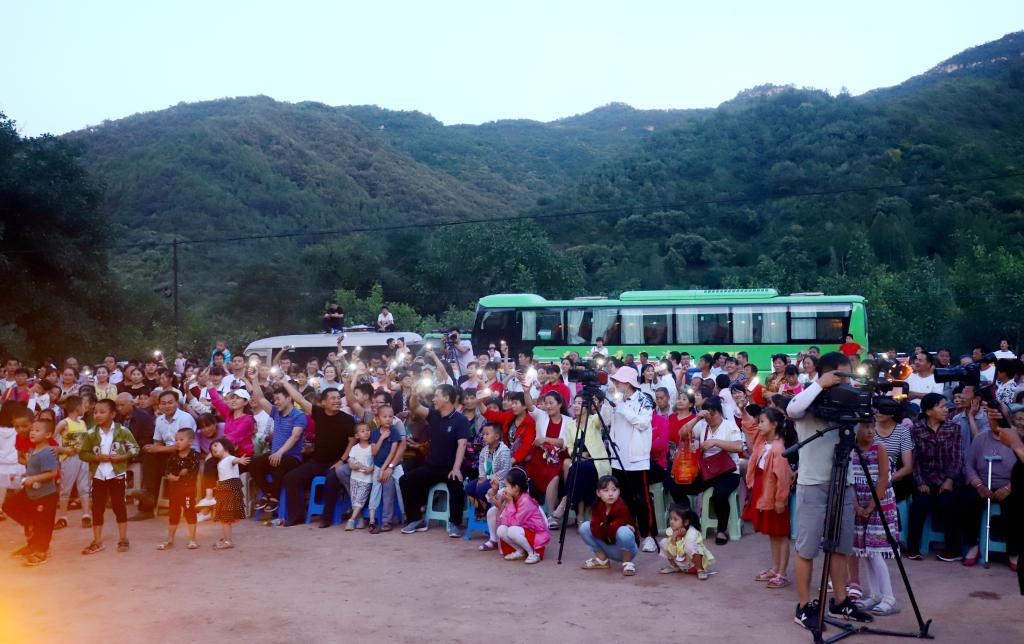 观看群众用手机闪光灯回应志愿者的精彩表演