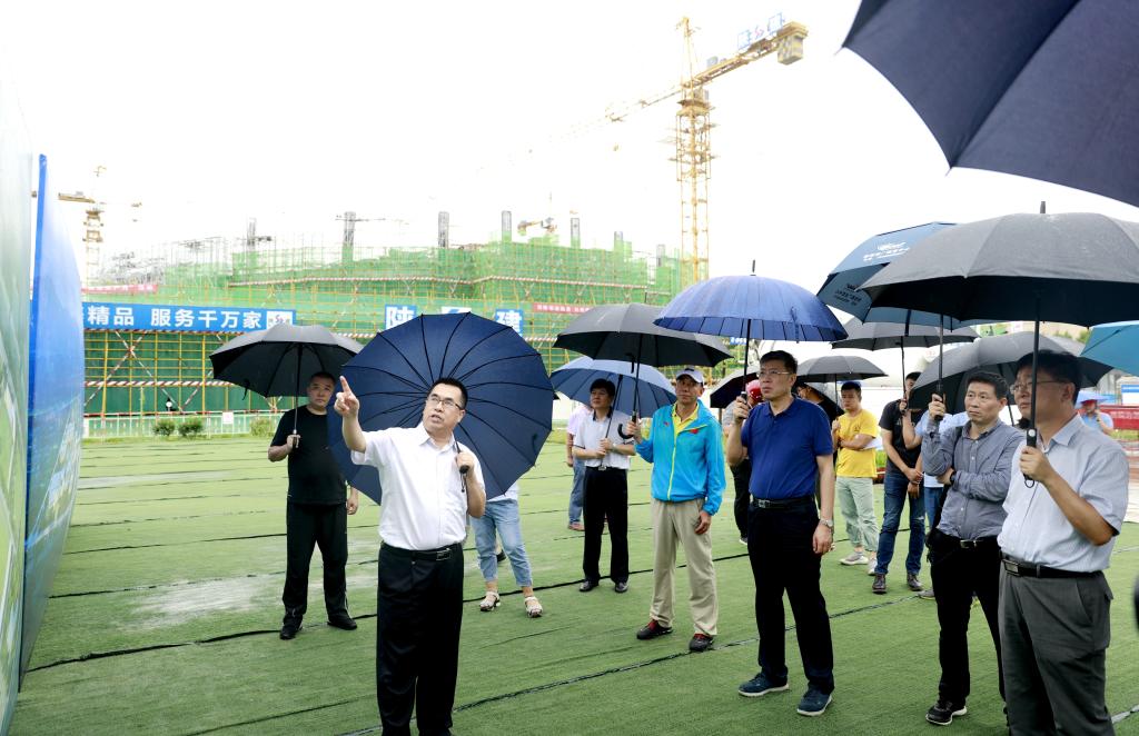 本网讯 7月23日上午,省委组织部副巡视员、十四运会组织人事部驻会副部长王建忠,省发改委社会处正处级调研员、十四运会场馆建设部综合处处长杨海鹏等调研督查我校鄠邑新校区“一馆四场”建设情况,我校副校长李富生以及基建处处长甘泽军、鄠邑区区委书记范九利、鄠邑区常务副区长张成群等陪同调研。