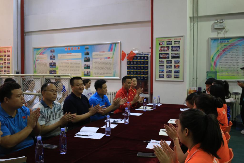 本网讯 在新中国成立70周年之际,为了进一步将“不忘初心、牢记使命”主题教育推向深入,校掷球队9月30日在学院地掷球馆举行“不忘初心、牢记使命”“学习女排精神,积极备战世界杯”主题教育座谈会。副校长陈彦、中国掷球运动学院院长雷甲谋、社会体育与休闲体育学院院长杨建设出席座谈。地掷球队教练及运动员30余人参加座谈。