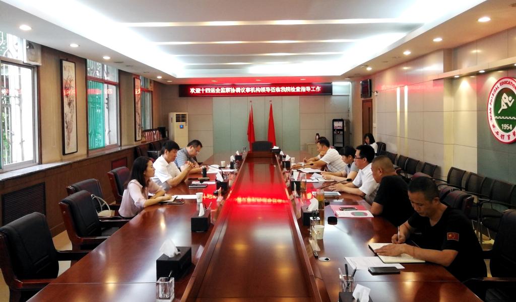 本网讯 近日,省纪委监委与省十四运筹(组)委员会协调议事机构办公室田国胜、陈鑫等来到我校,对十四运“一馆四场”项目招投标等工作进行专项监督检查,并与我校党委副书记、纪委书记、监察专员赵军,副校长李富生等相关负责人就“一馆四场”建设情况进行了座谈。