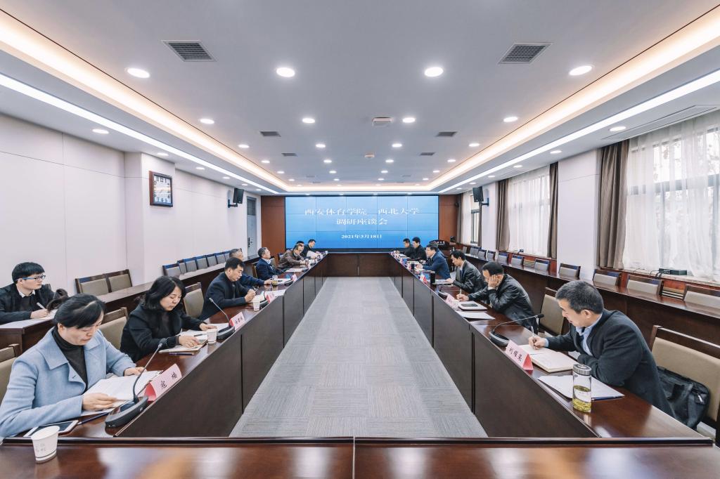 本网讯 为落实学校年度重点工作,深化“放管服”改革,积极探索推进“一院一策”改革试点,进一步激发办学活力,3月18日下午,校长刘子实、副校长刘新民带队赴西北大学考察调研“一院一策”改革工作。西北大学校长郭立宏、副校长王正斌及双方有关单位负责人参加调研座谈会。