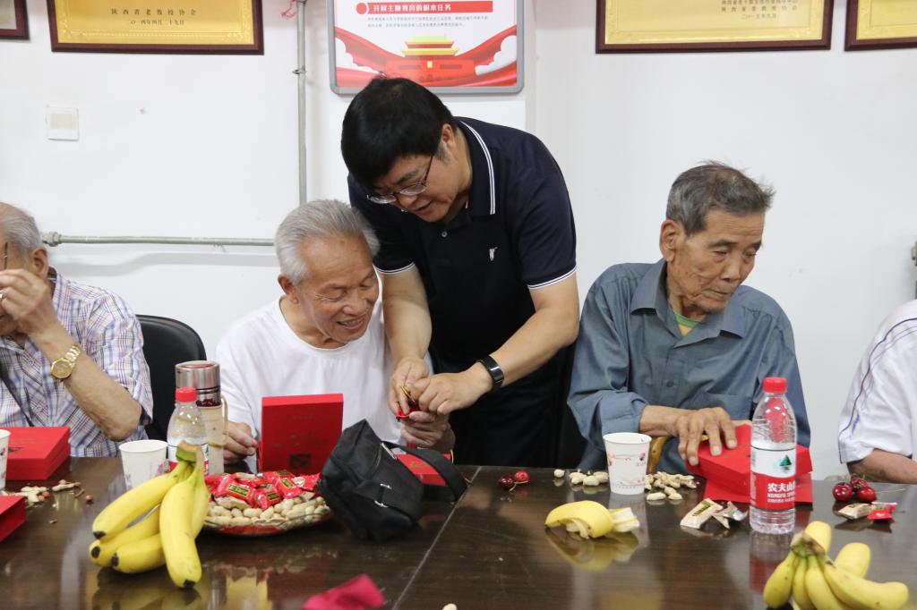 我校共有61名老党员获颁纪念章。离退休处副处长楚翠峰宣读了纪念章发放名单,黄道峻为党员代表一一颁发纪念章,并和大家亲切交谈。