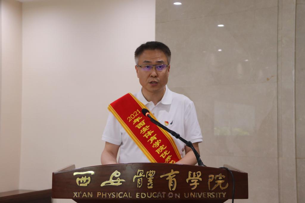 运动解剖力学教研室党支部书记刘涛介绍了党支部成立10年里探索以“三围绕”为党建工作思路,“党建+教学+科研”协同推进的工作模式所取得的成果。他表示,支部将以荣誉为起点,继续以党建工作为引领,紧扣新时代赋予高校教师党支部的职责和使命,以建成坚强基层战斗堡垒和特色教工党支部为发展目标,把支部建设的更坚强、更温暖、更贴近每个党员,为学校的建设发展做出更大的贡献。